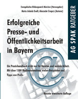 | 6. | <link http://www.ibpro.de/angebote-im-sozialmanagement/veroeffentlichungen/publikation-bestellen/>"Presse- und Öffentlichkeitsarbeit", 9. völlig überarb. Neuauflage 2013</link> | Seit zwei Jahrzehnten das umfassende Nachschlagewerk in Bayern - unentbehrlich für die Presse- u. ÖA in Unternehmen, Verbänden, Vereinen, Behörden, Kirchen und Parteien!, Verlag AG SPAK, 197 S., ISBN 978-3-940865- 54-0 | 18,00 € |